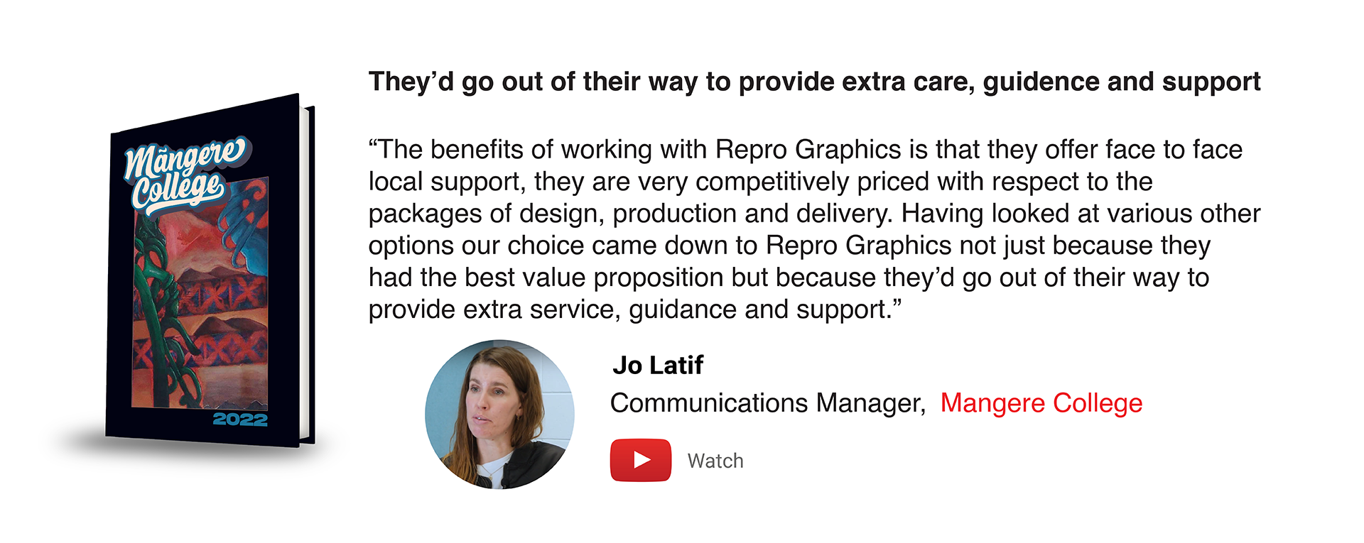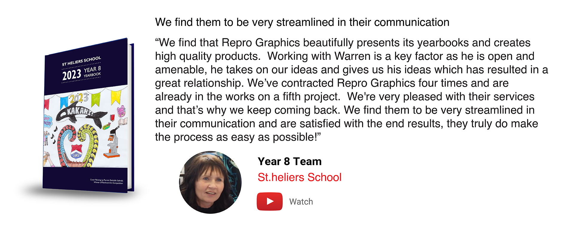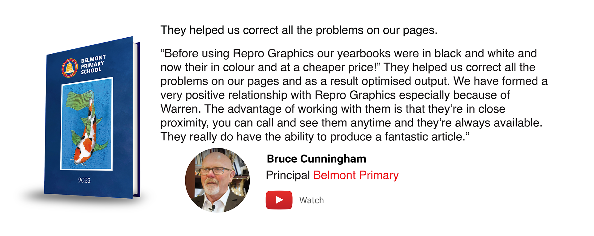 Read more“We find that Repro Graphics beautifully presents its yearbooks and creates high-quality products. Working with Warren is a key factor as he is open and amenable, he takes on our ideas and gives us his ideas which has resulted in a great relationship.